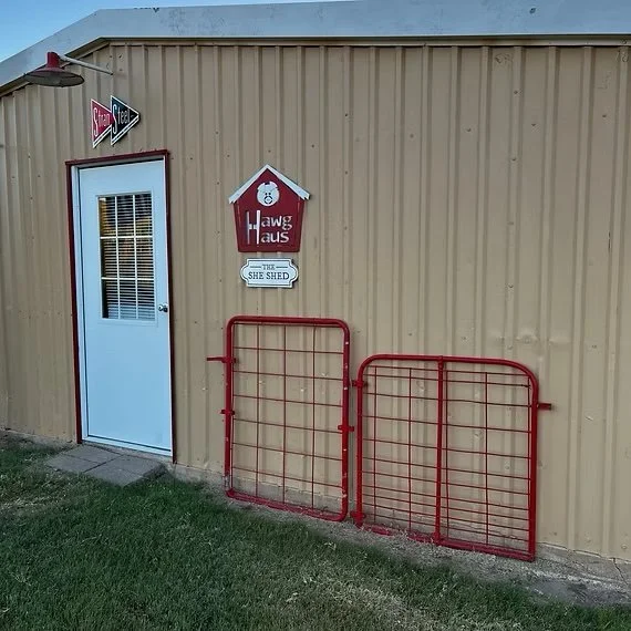 My business requires storage--if you can imagine--and, I actually store my finished and unfinished pieces in an old cement-floored hog barn. Yup. Not kidding. The building is now officially Hawg Haus!